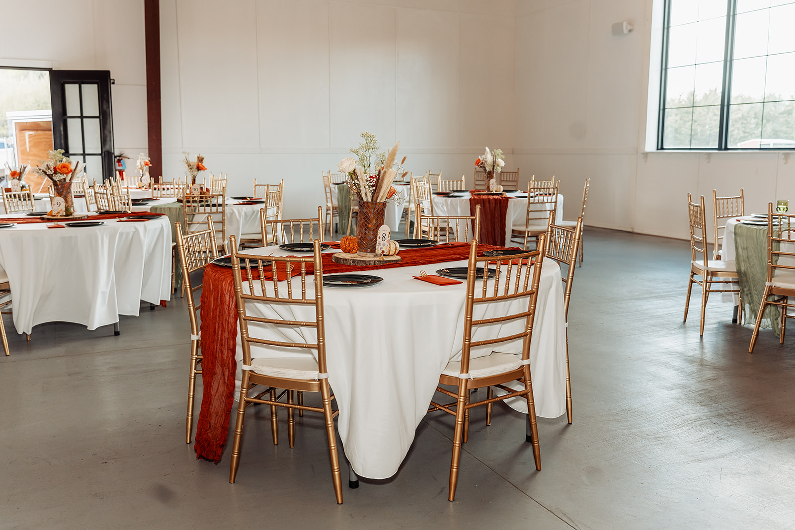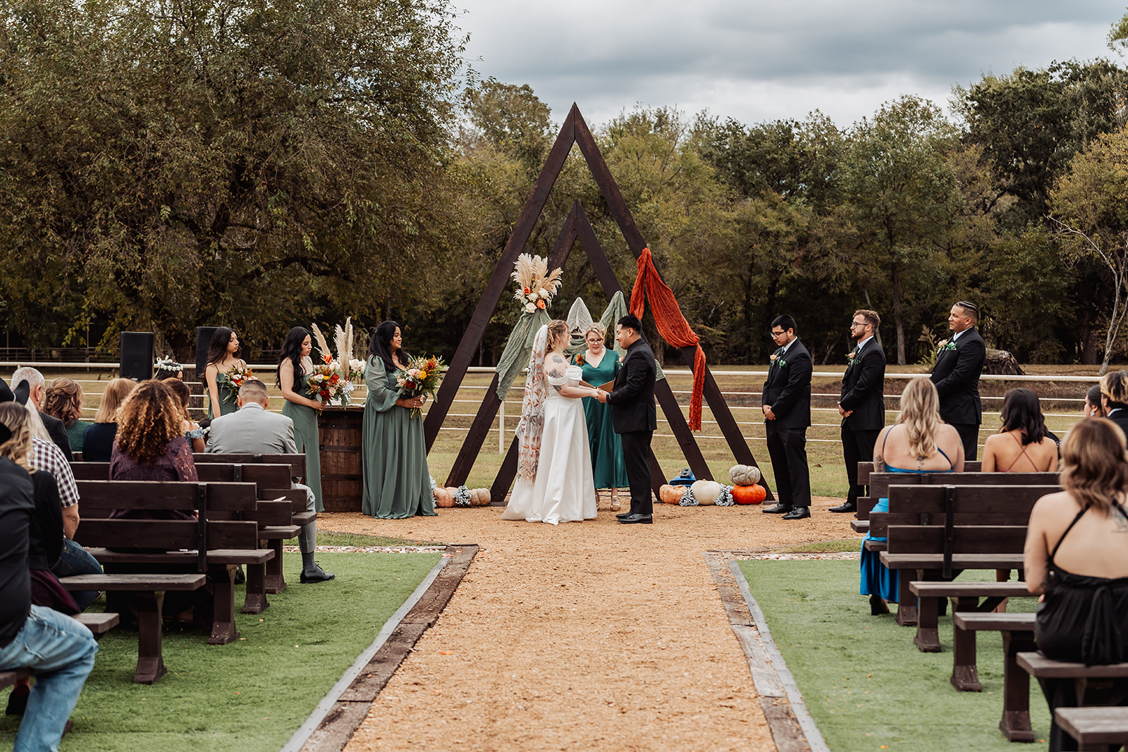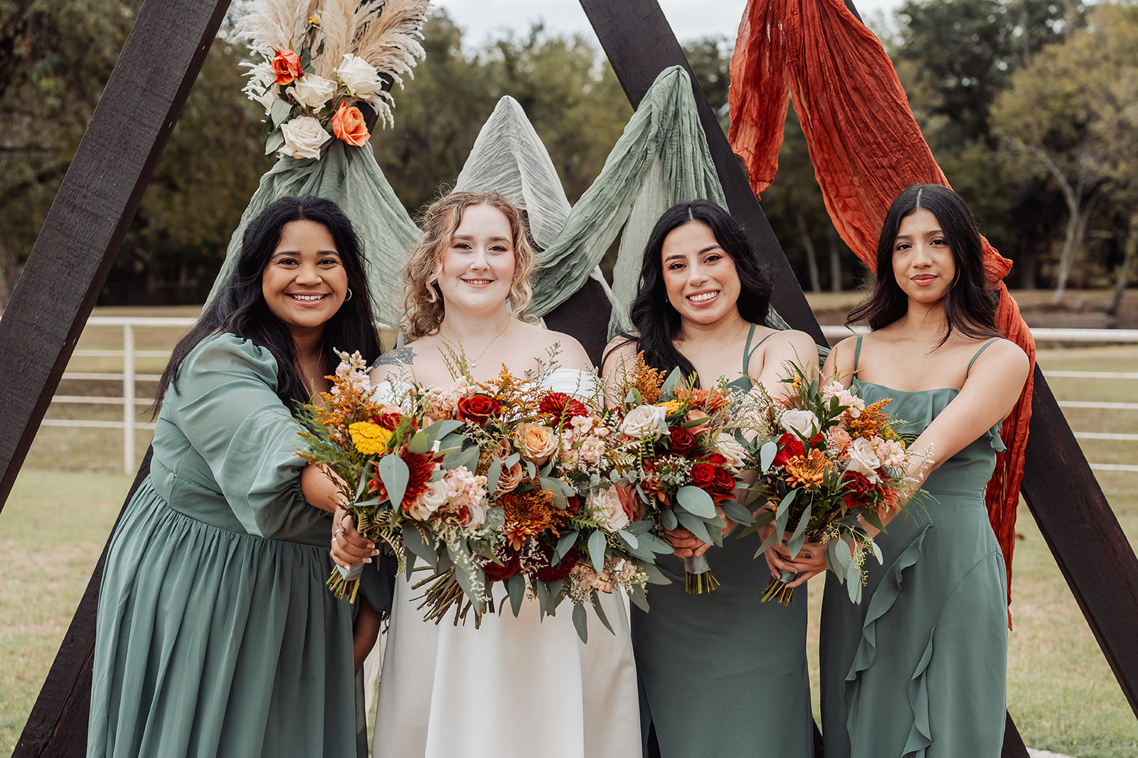 This fall bride leaned into the warm tones of the season—burnt orange, cinnamon, terracotta, and honey.